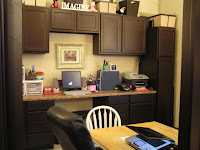 I put 3 shoe shelves inside the closet. It holds containers of pens, pencils, crayons, glue, markers, etc. Everything my kids need to do homework and will need later in the year to replenish their school stash. I have a brown filing container on the top shelf that I use to file their papers away that I want to keep. I also have an "In Box" that they will place anything I need to review in that basket. My kitchen counters will finally be clean.